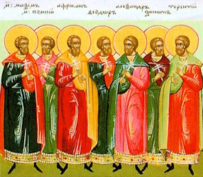 При этих словах правитель показал орудие пыток, и многие при виде их устрашились и отреклись от веры Христовой. Некоторые же из верных, числом сорок, твёрдо решились умереть за Христа и со дерзновением говорили друг другу: