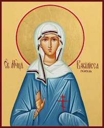 Просвещенные верою христианскою святыми апостолами Петром и Павлом, святые Василисса и Анастасия посвятили себя на служение Господу, погребая тела святых мучеников, умерщвляемых за Христа. Когда императору Нерону* было донесено о них, то, по повелению его, они были взяты воинами и заключены в темницу. [*Император римский Нерон, жестокий гонитель христианства, царствовал с 54 по 68 г.] После того они приняли многие мучения за Христа: их били без милосердия, строгали железом, опаляли свечами, но они оставались твердыми и непреклонными в вере христианской. Наконец, им усечены были главы*, после чего они отошли ко Господу, чтобы предстать пред Ним на небесах в сонме прочих святых мучеников и мучениц. [*Кончина святых мучениц последовала во второй половине I в. Мощи их покоятся в Риме, в храме, построенном в честь Божией Матери, Умиротворительницы.]