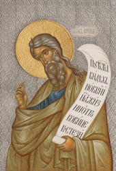 Очистив духом, великий пророче и мучениче, твое светозарное сердце, славне Иеремие, пророчествия дар свыше приял еси и возопил еси велегласно во странах: сей Бог наш, и не приложится ин к нему, Иже, воплощся, на земли явился есть.